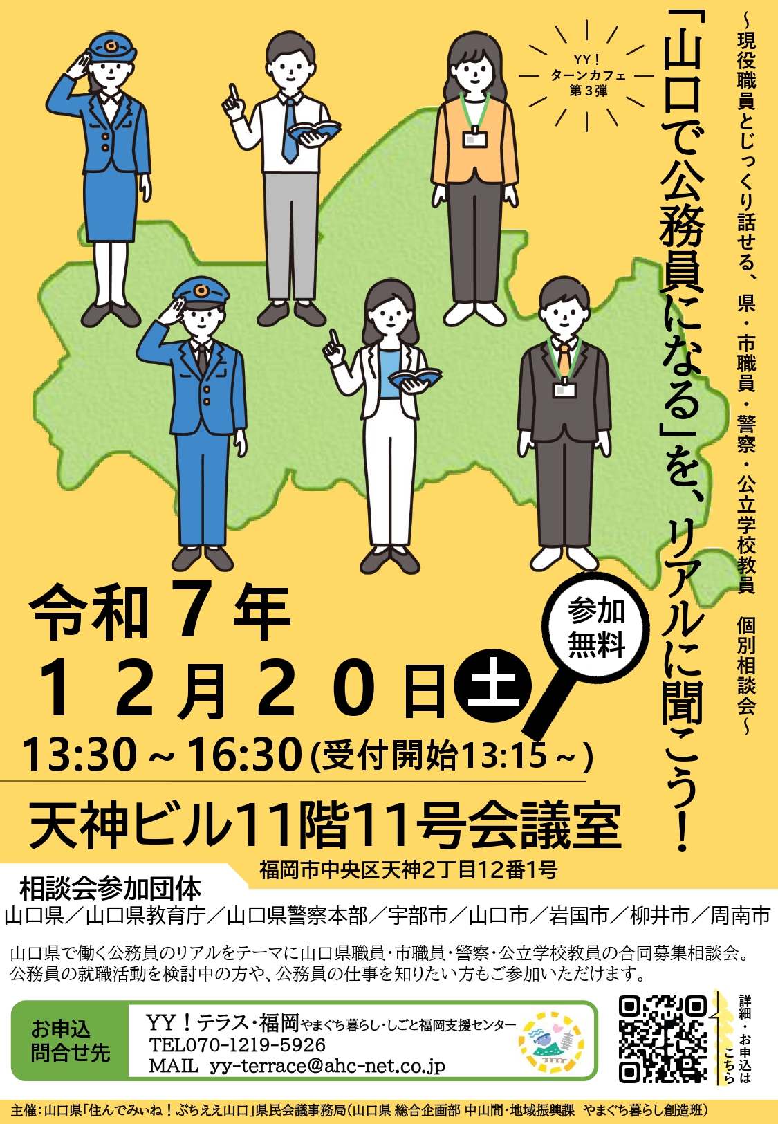 【12月20日開催】「山口で公務員になる」をリアルに聞こう!〜現役職員とじっくり話せる、県・市・警察・公立教員個別相談会〜