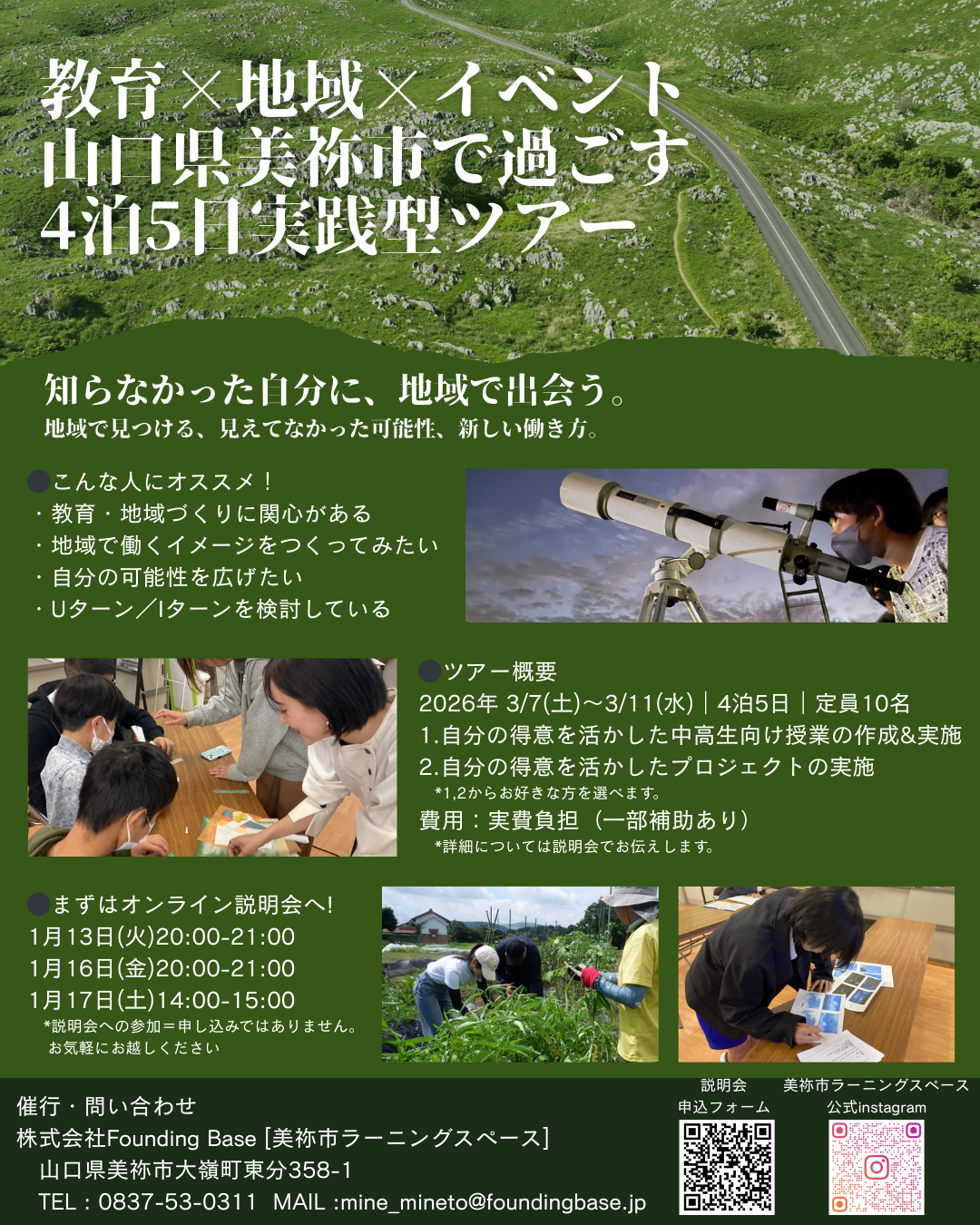 『教育×地域×イベント』山口県美祢市で過ごす4泊5日実践型ツアーを開催します!