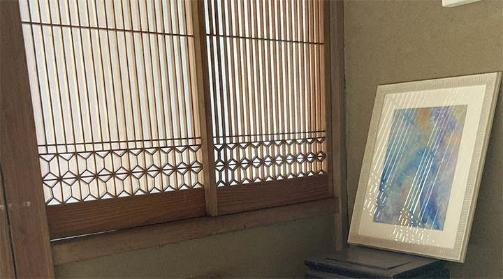 柔らかな光が入る和室など、古い家ならではの静けさと味わいが残る空間が魅力。襖のペイントやモビールづくりなど、小さなDIYで"自分のアトリエ"へと育ててきた家です。