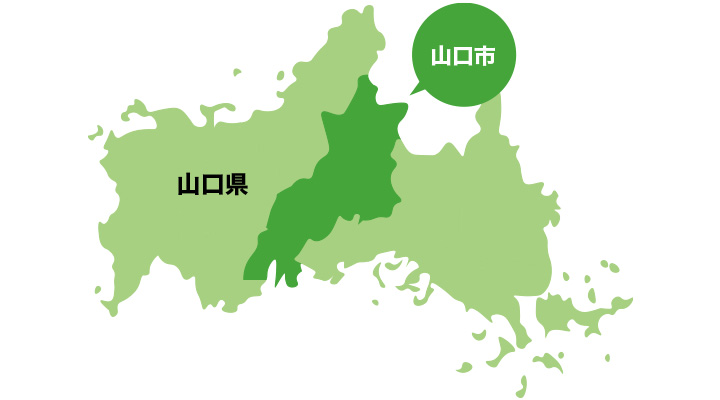 山口市は、県のほぼ中央に位置し、北は島根県に接し、南は瀬戸内海に面する、豊かな自然や歴史が共存する文化都市です。